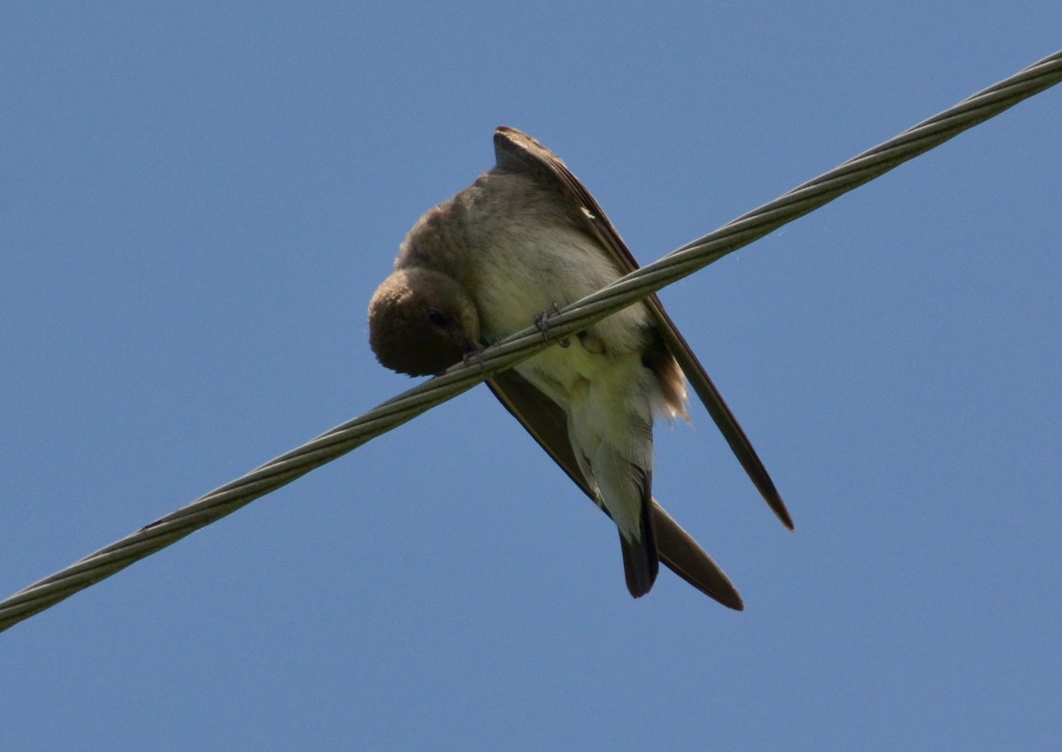 A couple of Northern Rough-winged Swallows showed up on a power line above our driveway one afternoon; I love those super long feathers under this bird's tail: