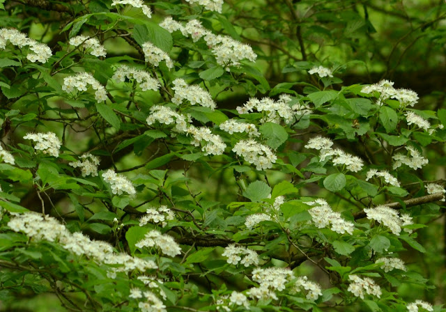 And on May 29, the many hawthorn trees in our woods were covered with blossoms (many more than I saw on these trees last year):